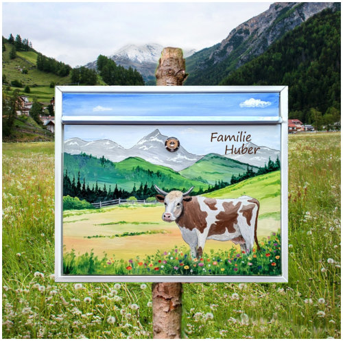 Briefkasten mit vollflächiger Bemalung (ausser Innen- und Rückseiten): zwischen 150 und 220 Euro** (je nach